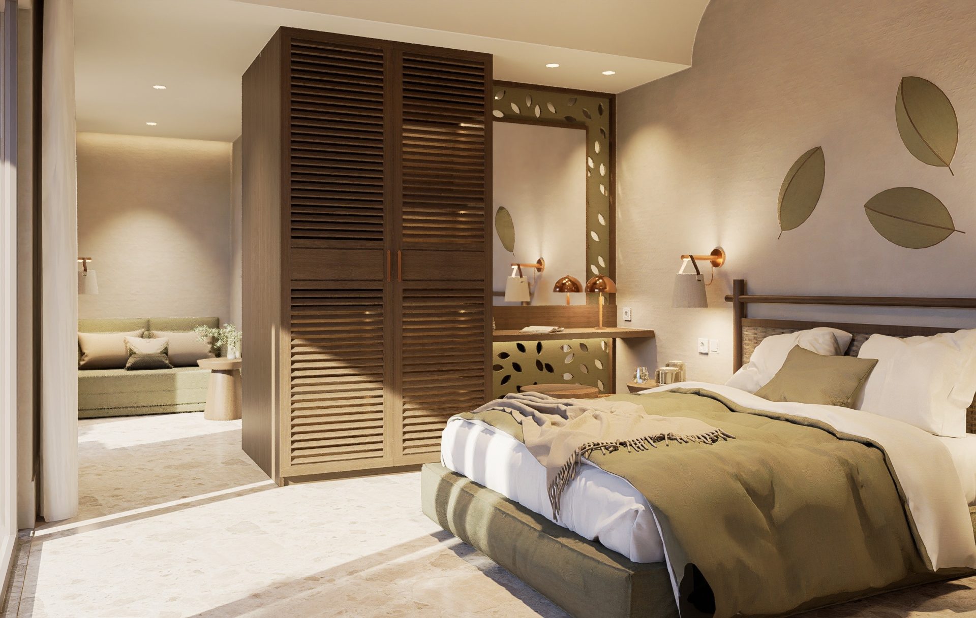 Spacious Suites (23.5 m²) are an ideal choice for couples or small families (2+1) who value extra space and freedom. The functional interior layout ensures comfortable relaxation both during the day and in the evening, while direct access to the pool makes every day begin and end to the rhythm of water.